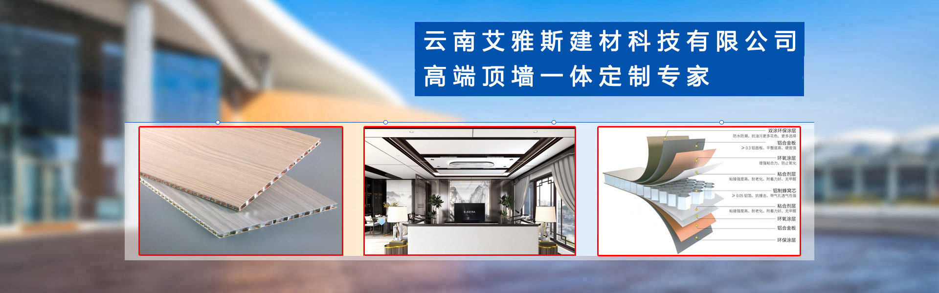 高端頂墻一體定制專家——云南艾雅斯建材科技有限公司,位于昆明經(jīng)開區(qū)小石壩社區(qū)白水塘上村36號,專注于鋁蜂窩大板,配套鋁型材,集成墻板,無主燈,照明系列的設(shè)計、生產(chǎn)、銷售、安裝于一體的高端頂墻定制專家,是一家具有多年生產(chǎn)研發(fā)及完整銷售管理經(jīng)驗的公司,艾雅斯鋁蜂窩板全新視覺觀感,高端大氣,風格百變,隨心設(shè)計! 云南艾雅斯建材生產(chǎn)的鋁蜂窩板、鋁型材、集成墻板深受廣大消費者所喜愛,具有環(huán)保無醛,防水防潮,隔音隔熱,高強度,抗沖擊,不易變形,堅固牢靠等特點,廣泛應(yīng)用到各行各業(yè),成為全國各地的加工廠、批發(fā)商一站式的供應(yīng)商,備受好評。云南艾雅斯建材科技有限公司嚴格執(zhí)行售前、售中、售后,全方位的合作形式,我們堅持以產(chǎn)品質(zhì)量為中心,以客戶需求為理念,為廣大加工廠,批發(fā)商提供優(yōu)質(zhì)的產(chǎn)品與服務(wù)。了解更多